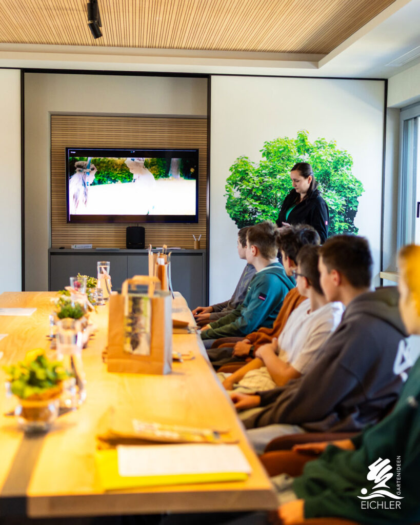 Diesen Dienstag war es wieder so weit: Zu „Schau rein“ – Woche der offenen Unternehmen haben wir junge Schülerinnen und Schüler in unser Baumbüro eingeladen und ihnen einen Einblick in unser Unternehmen und unseren grünen Alltag im Garten- und Landschaftsbau gegeben.