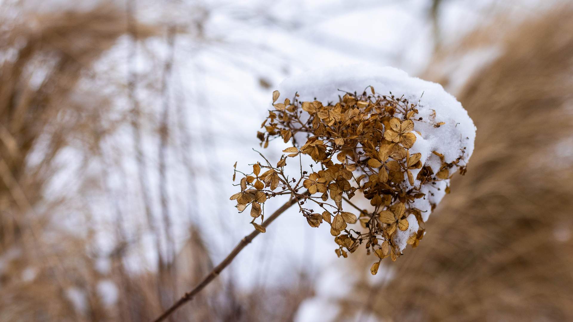 Zwischen Stauden und Gräsern glitzern einzelne Lichterketten – ein stimmungsvoller Akzent, der den Garten auch im Winter lebendig wirken lässt.