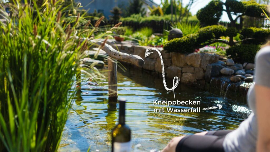 In diesem Garten haben wir einen natürlich verlaufenden Bachlauf geschaffen, der sanft in ein Kneippbecken mündet – für pure Erfrischung und Entspannung. Umgeben von Natursteinmauern, Treppen und einem harmonischen Pflanzenkonzept entsteht ein Ort voller Ruhe und Bewegung zugleich.