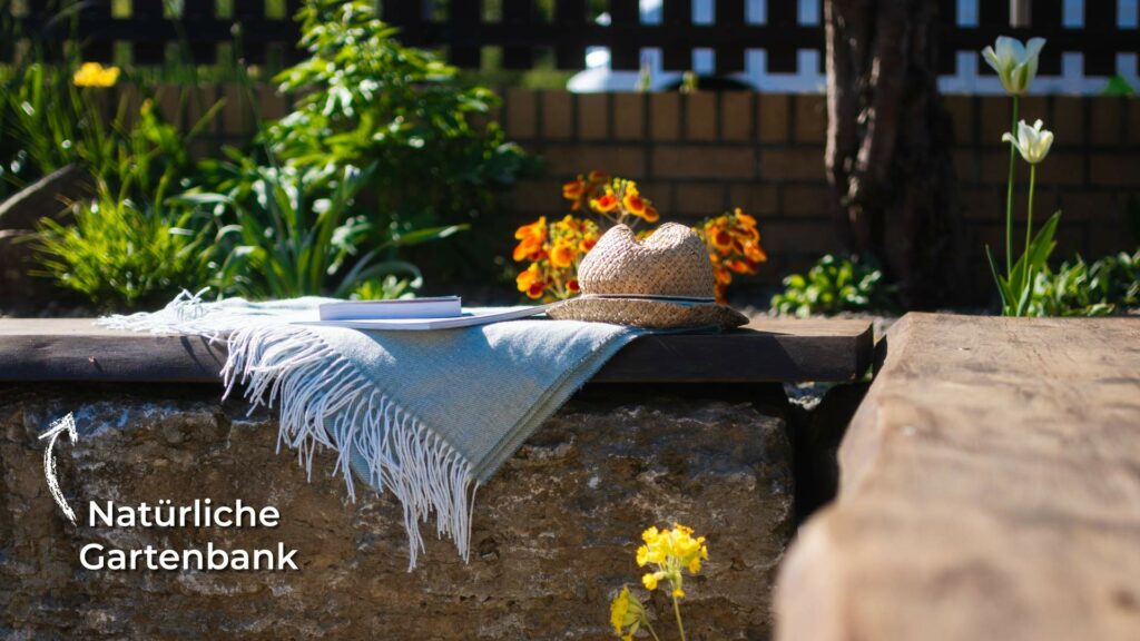 Der Bonsai als Blickfang und die Sitzbank auf der Mauer machen diesen Garten zu einem Ort zum Durchatmen, Erleben und Verweilen.