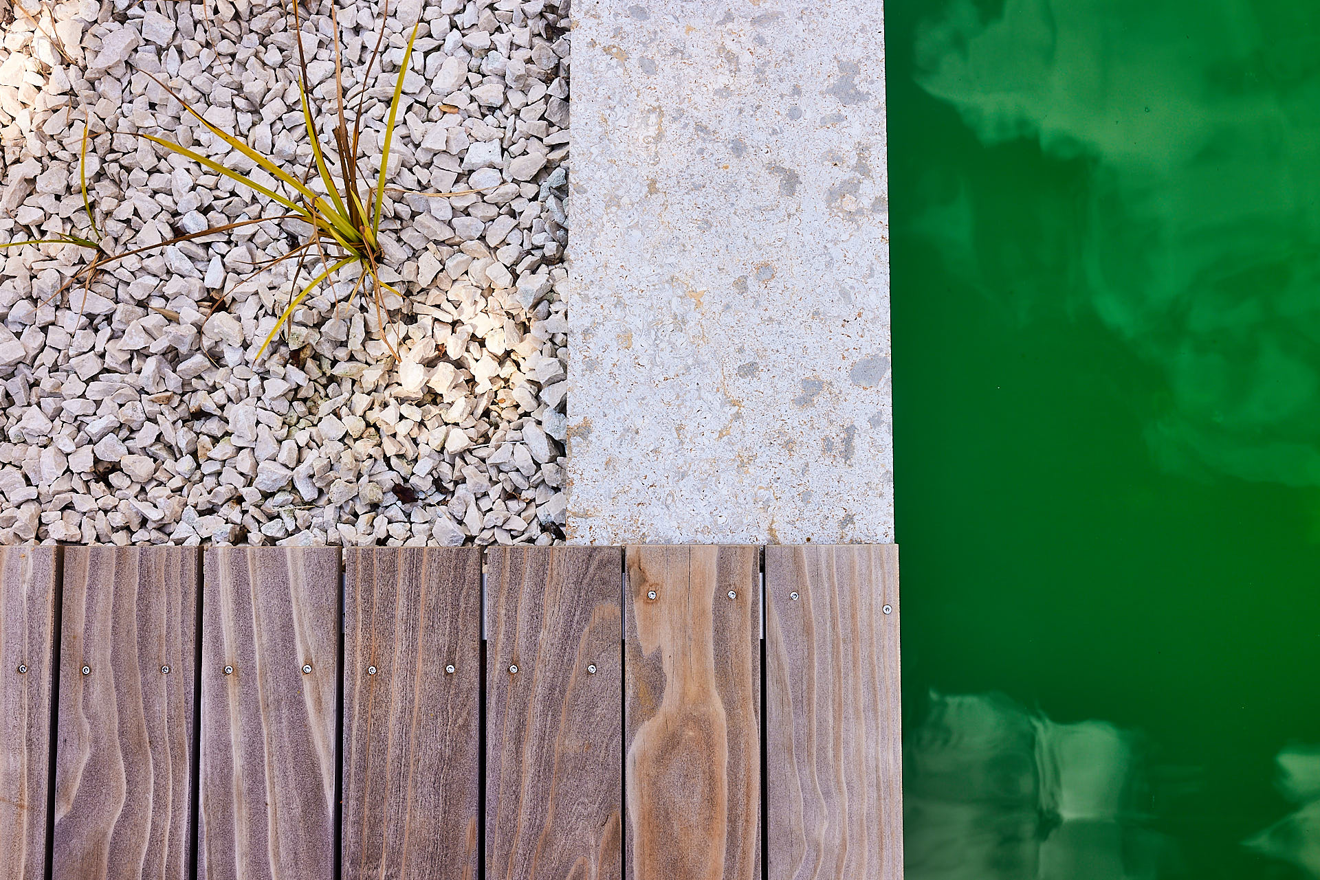 Ergänzt wird er durch einen integrierten biologischen Filterbereich, der für dauerhaft sauberes Wasser sorgt – ganz ohne Chemie. Die breite Einstiegstreppe erleichtert hierbei nicht nur den Zugang, sondern verleiht dem Pool eine elegante und einladende Wirkung.